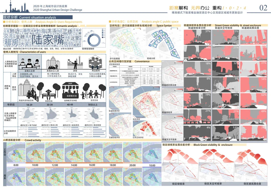 2020上海城市設計挑戰(zhàn)賽選取陸家嘴金融貿(mào)易區(qū)中心區(qū)(小陸家嘴)局部區(qū)域作為設計對象,以“更具國際競爭力的商務街區(qū)”為設計目標,從商務區(qū)功能活力提升、慢行空間品質(zhì)提升、多主體商務區(qū)更新機制探索和智慧街區(qū)規(guī)劃等方面入手,探索商務區(qū)的存量更新。挑戰(zhàn)賽以綜合應用大數(shù)據(jù)等信息技術支撐城市設計為導向,為商務區(qū)存量更新提供創(chuàng)新性設計思路。