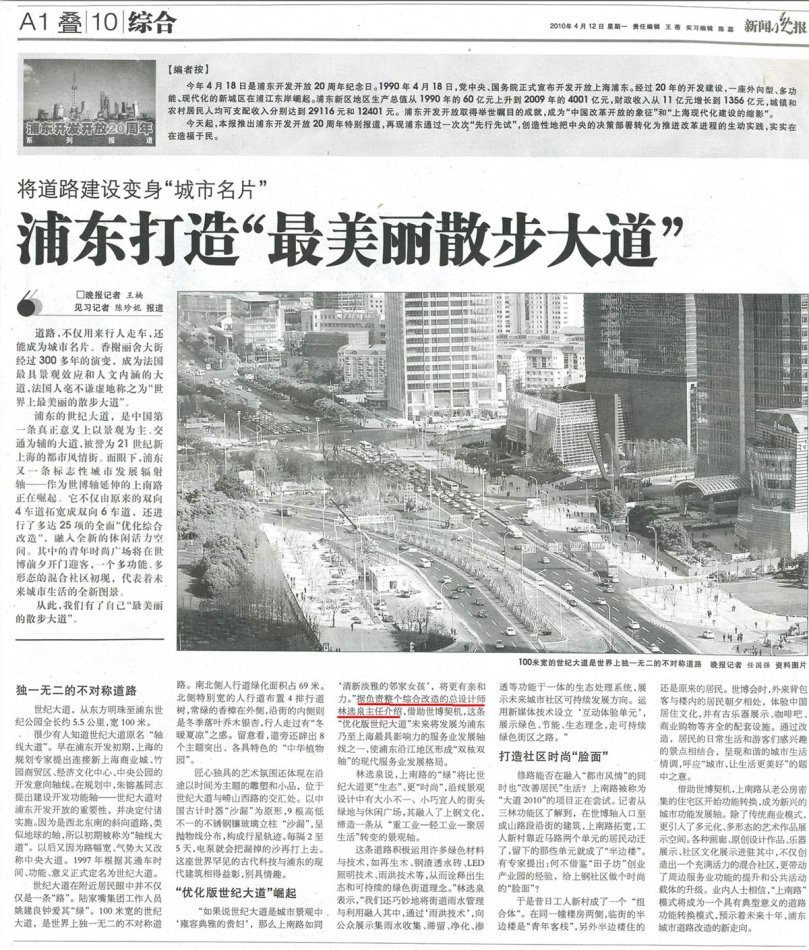 浦東打造“最美麗散步大道”--將道路建設(shè)變身“城市名片”