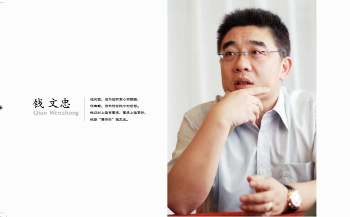 他尖銳,因?yàn)樗兄孕牡钠谕?;他幽默,因?yàn)樗歇?dú)立的思想。 ——他總對(duì)上海有要求、要求上海更好,他是“博學(xué)的”錢文忠。