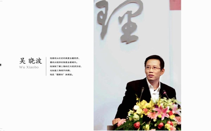 “上海是我“呼吸空氣”的地方,我通過上海這個(gè)信息最開放最全面的地方了解國家脈動(dòng)、掌握財(cái)經(jīng)信息、接觸各種人、了解各種事,上海是中國的‘前庭’、也是我的‘前庭’。”著名財(cái)經(jīng)作家吳曉波先生和上海的關(guān)系十分親近,他幾乎每月都要多次來上海。 喜歡用財(cái)經(jīng)史的角度去研究一個(gè)城市的吳曉波評(píng)價(jià)上海“這個(gè)城市里有著中國最優(yōu)秀的人”,他認(rèn)為“上海要走向更強(qiáng)大的明天必須要更開放、更創(chuàng)新,而這種創(chuàng)新是需要各個(gè)方面各個(gè)領(lǐng)域的齊頭并進(jìn)的“海納百傳”的全面創(chuàng)新,具體地需要各個(gè)領(lǐng)域都出現(xiàn)一批走在前面的、不管是對(duì)國內(nèi)還是對(duì)國際都有影響力的人。”