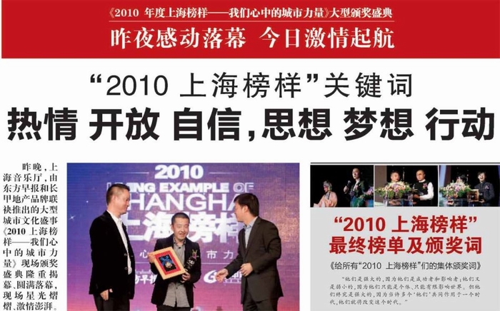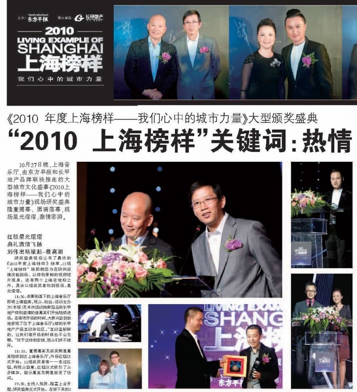 金秋2010,《東方早報(bào)》、長甲集團(tuán)共同發(fā)起“上海榜樣——我們心中的城市力量”全球甄選活動(dòng)。