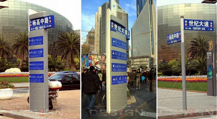 寧中意:2006年上海合作組織峰會(huì)期間,浦東大街小巷都更新了一種新型路名牌,這在當(dāng)時(shí)國內(nèi)是不多見的,至今,民眾的評(píng)價(jià)都很高,我個(gè)人的親身體會(huì)是,這個(gè)小東西很人性,找路確實(shí)方面多了。你是路名牌設(shè)計(jì)者,請(qǐng)談?wù)勀愕脑O(shè)計(jì)想法?