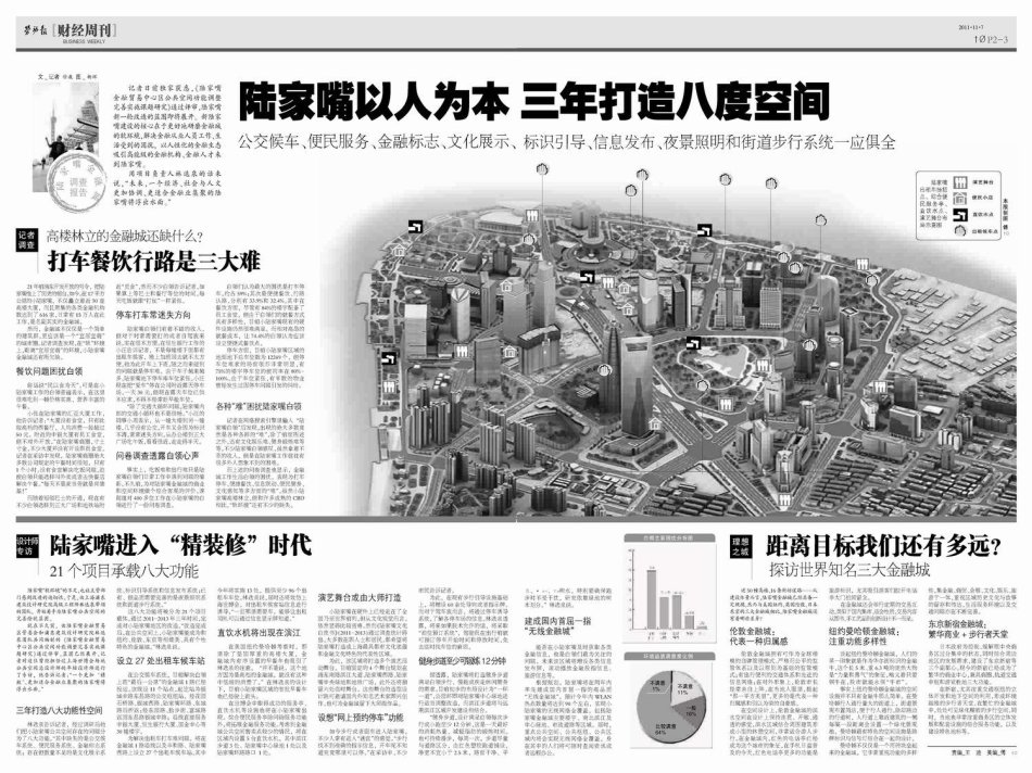 這八大功能將被分為21個項目載體,通過2011-2013年三年時間,完成對小陸家嘴地區(qū)的改造?!案脑焱瓿珊螅诠部臻g上,小陸家嘴能成為和紐約、倫敦、東京等相媲美、具有個性特色的金融城?!绷诌x泉說。