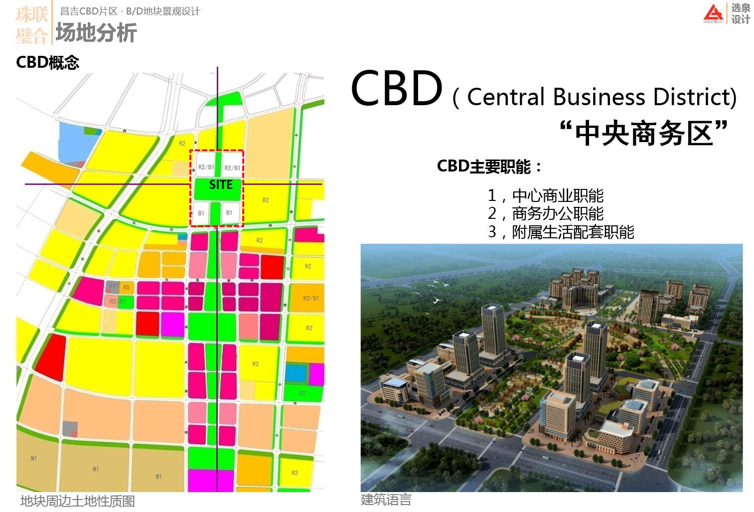 選泉設計團隊通過先后8年的上海世博會公共空間、上海陸家嘴金融城公共空間提升設計的經(jīng)驗和總結,在該方案中將昌吉市中央商務區(qū)的定位從傳統(tǒng)的CBD向RBD轉變,因此室外公共空間必將起到繁榮中央商務區(qū)人氣以及提升環(huán)境品味的積極作用,但與一般性的城市公共空間不同的是,CBD的公共空間必將面臨更多的現(xiàn)狀挑戰(zhàn):白領的日間午間休憩與周邊市民的時尚夜間休閑;訪客的室外商務洽談空間以及對此形成對CBD的城市印象;以及整體的交通停車問題等。 在具體的設計中,通過合理的利用空間中自然環(huán)境條件包括日照,風影等條件,以及疊合車行交通流線等以“珠聯(lián)璧合”為設計概念,通過導向性的線狀鋪裝,將各空間板塊疊合串聯(lián)在一起,合理的布置交通空間,休憩性空間,過渡性空間,展示性空間等,為CBD預留綠色空間,形成完整的功能體系,滿足不同人群需求,實現(xiàn)人性化,生態(tài)化,多樣化的都市環(huán)境。