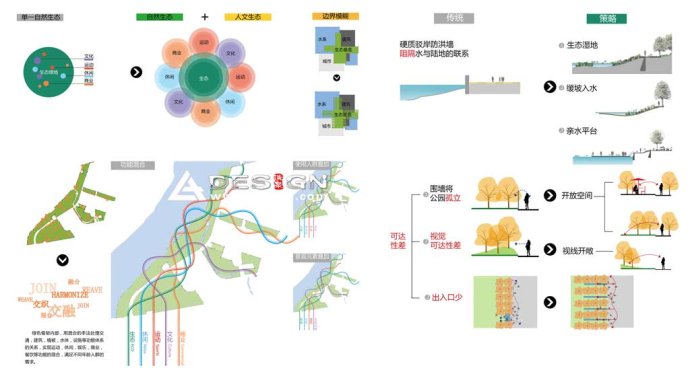 前灘濱江公園不僅僅是綠體,水體,建筑,植被等功能體系的交融,更重要的是,能通過我們的設(shè)計(jì)將人們?nèi)粘I畹母鞣矫?,商?wù),文化,休閑,運(yùn)動(dòng)等等融入到前灘富有活力的綠色體系中去,實(shí)現(xiàn)功能與形式的融合,自然與人文的融合,綠色基底上各種功能孕育而生: