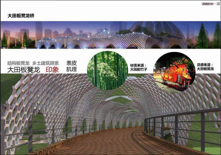 并運(yùn)用到鳳凰谷的人行橋梁、照明燈具、設(shè)施小品中,