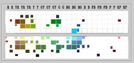 色相:以環(huán)境色中常見(jiàn)的PB-BG(江面天空色相),G-GY(植被色相)、YR-Y(江岸、洲灘色相)以及無(wú)色彩的色相范圍中選定候補(bǔ)色。