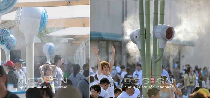 ??? 降低空氣溫度是最直接有效的改善人們體感舒適度的方式,在夏季的世博場(chǎng)地,若能使局部空間的環(huán)境溫度降低3-5度,可以極大改善參觀游客的體感舒適度。