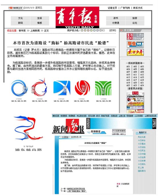1.目前,國內(nèi)能為一條道路專門設(shè)計(jì)一個(gè)標(biāo)志的情況不多,為城市主干道設(shè)立標(biāo)識(shí),在上海還是首次。曾引起《青年報(bào)》、《新聞晚報(bào)》媒體的關(guān)注以及得到網(wǎng)絡(luò)媒體的轉(zhuǎn)載報(bào)道。